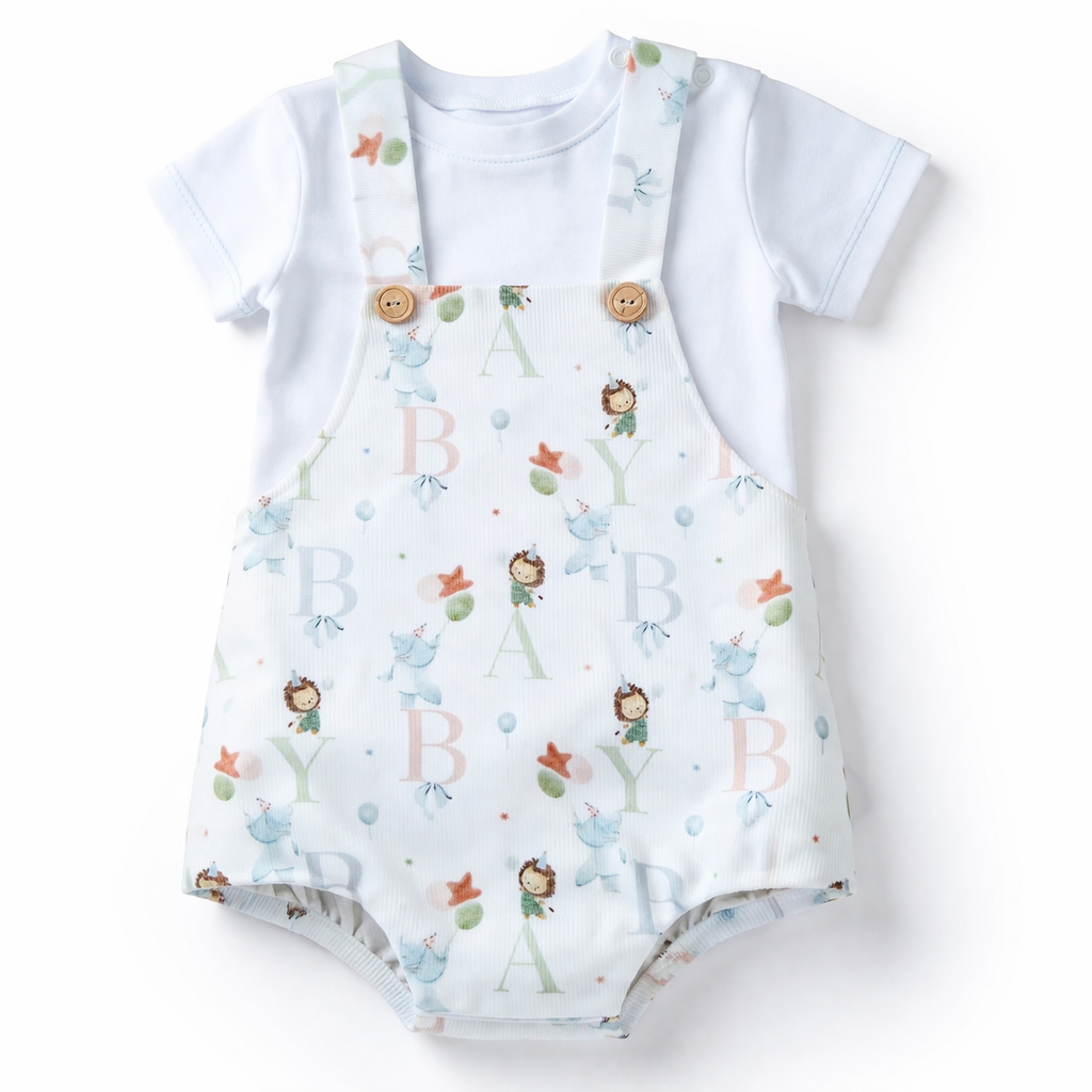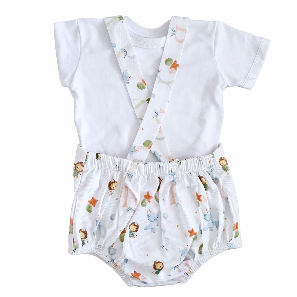 Olifantjes setje. T-shirt en luierbroekje met bretels.